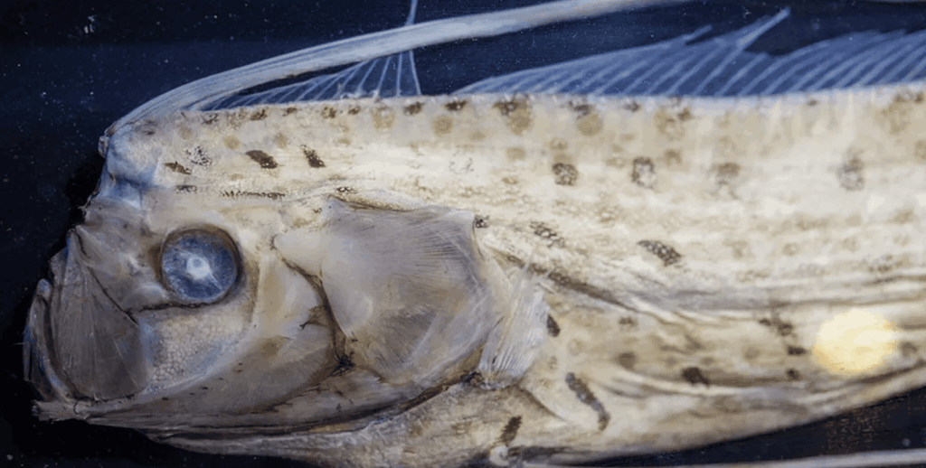 При этом он не живет у поверхности. Его естественная среда — толща океана на глубинах примерно от 200 до 1000 м, а иногда и ниже. Это зоны с низкой температурой, высоким давлением и минимальным количеством света, где человек почти не бывает, поэтому сельдяной король остается одним из самых малоизученных и редко наблюдаемых морских обитателей.